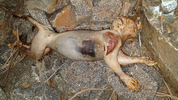Como já estava em estado avançado de decomposição, os moradores enterraram o corpo do animal.