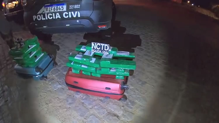 Em uma ação na região, policiais civis realizaram uma abordagem a um ônibus na BR-116, em Penaforte/CE, próximo ao Estado de Pernambuco. O coletivo teria como destino o município de Mossoró, no Rio Grande do Norte. Com auxílio de um cão farejador, os investigadores encontraram, no compartimento de bagagens do veículo, duas malas com 36 tabletes de maconha, resultando em 41,2 quilos.
