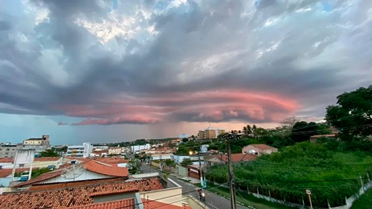 Um fenômeno conhecido como "nuvem-prateleira", tecnicamente conhecida como Cumulonimbus Arcus, foi registrada na tarde de sábado (14) no município do Crato. Uma moradora fez o registro pouco antes de um temporal cair na região.