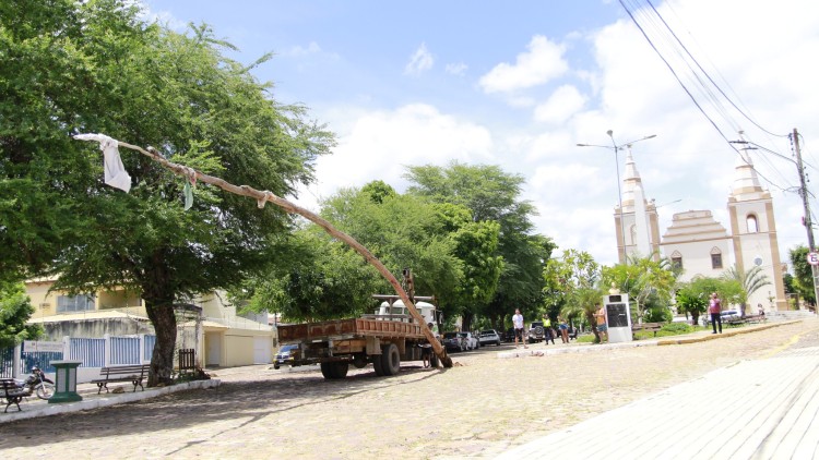 Pau da Bandeira de Santo Antônio é retirado da Rua da Matriz, em Barbalha