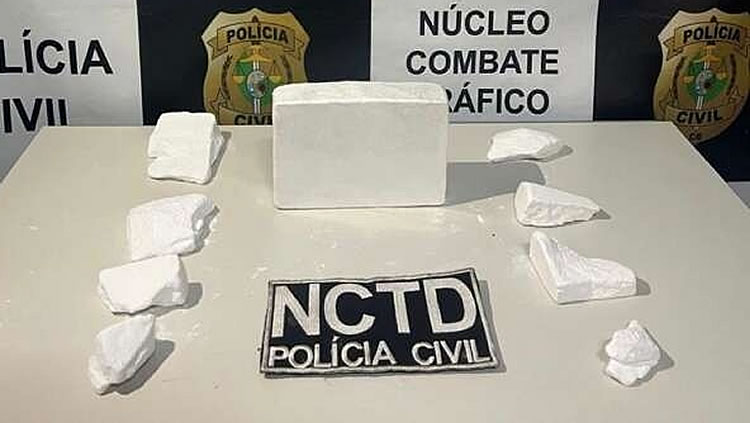 Policiais civis prenderam uma garota de 23 anos que transportava drogas de Fortaleza para o Cariri. A prisão de Michely Nayara de Sousa aconteceu na noite desta quinta-feira em Farias Brito e ela integra grupo criminoso. Os investigadores do Núcleo de Combate ao Tráfico de Drogas (NCTD) da Delegacia Regional de Juazeiro encontraram cerca de 2 Kg de cocaína na bagagem da garota que viajava num ônibus interestadual. O coletivo chegava ao Cariri e a droga seria comercializada durante o carnaval na região.