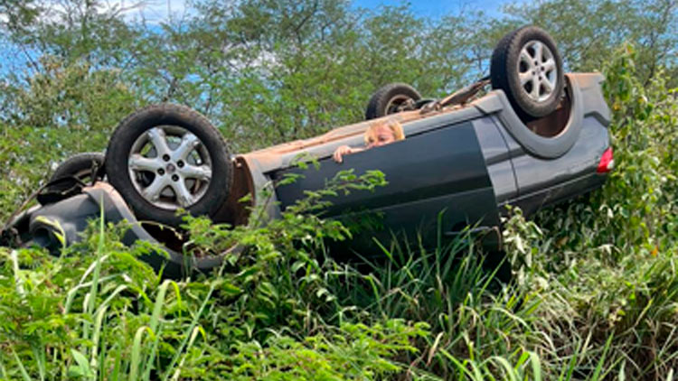 Mulher perde controle do carro em Mauriti e capota na CE-384