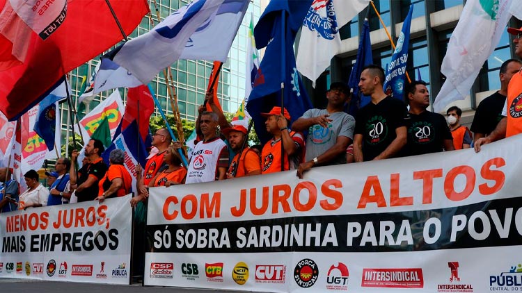 Centrais sindicais protestam contra taxa básica de juros de 13,75%